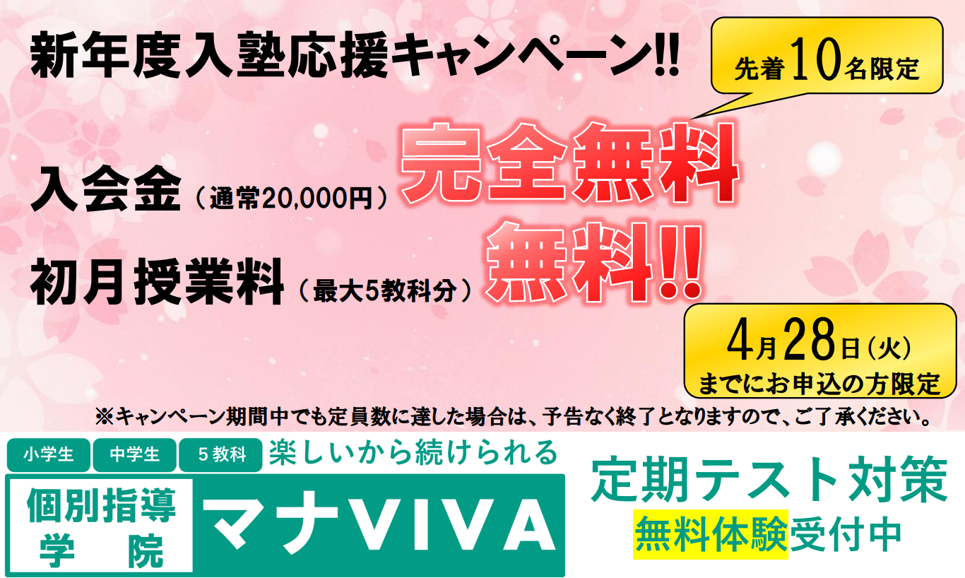 個別指導学院マナVIVAは、「学び=楽しい」をモットーにすべてのお子様に寄り添った個別指導塾です。